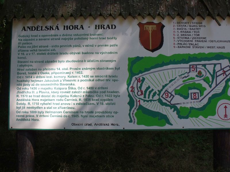 kemp. Cestou nedaleko Karlových Varů stojí zřícenina hradu Andělská hora ,